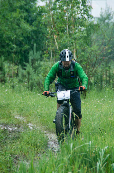 Затем стали подтягиваться гонщики. Первым был Василий Поздеев - первым зарегистрировался и первым прибыл на гонку. За ним участник из Тулуна - Олег Королев. Это его первый опыт участия в кросс-кантри. Жаль, что он начался с жестких условий.